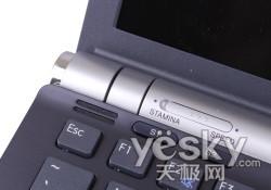 轉(zhuǎn)軸部分有一個STAMINA和SPEED模式切換鍵,這個切換鍵是專門針對這款機(jī)器獨(dú)特配置所設(shè)計的,由于Z55配備了雙顯卡,并且NVIDIA與IntelX4500并不支持熱切換,為了在省電和性能之間方便切換,索尼Z55加入了這個按鍵,在“持久(STAMINA)模式”中,它使用的是集成顯卡(移動式英特爾®圖形媒體加速器 4500MHD)。而在“(SPEED)模式”中,VAIO Z5系列使用的是獨(dú)立顯卡(NVIDIA GeForce 9300M GS (GPU) 顯卡,用戶可根據(jù)實(shí)際需求,在使用中做不同模式切換。
