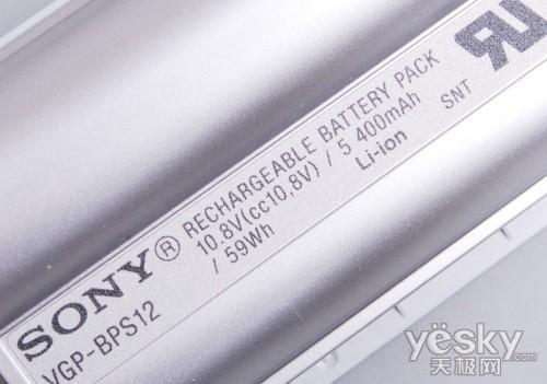 電池方面采用了一塊5400mAh鋰離子電池,索尼官方稱其續(xù)航時間為5個小時,當然如果在集成顯卡模式下,相信會優(yōu)于這個成績。