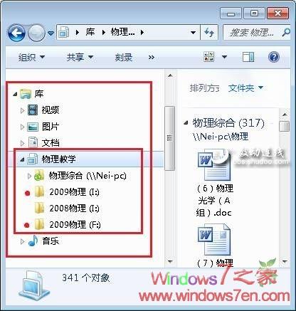 打開任意一個文件夾,都可以在導(dǎo)航欄里觀察到“庫”,默認(rèn)情況下,已經(jīng)包含了視頻、圖片、文檔、音樂等常用項(xiàng)目。而添加新的文件夾到庫中,可以直接右擊“庫”,在彈出菜單中選擇“新建→庫”即可。本例中,我們將新建的庫重命名為“物理教學(xué)”。接著,右擊“物理教學(xué)”選擇“屬性”,從彈出的對話框中單擊“包含文件夾”項(xiàng),再將本地電腦中的文件夾添加進(jìn)來即可(如圖1所示)。這里我們可以看到,添加進(jìn)來的文件夾后都標(biāo)有源文件夾的真實(shí)地址,方便我們加以區(qū)分(例如出現(xiàn)同名的文件夾)。