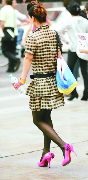 在西單、王府井等商業(yè)街走上一圈,無論是20多歲的年輕女孩,還是身著正裝的公司白領(lǐng),都在用黑色絲襪彰顯自己的美麗和個(gè)性!昂谏z襪在上世紀(jì)90年代初曾經(jīng)流行過一段時(shí)間,后來因?yàn)橛小愿小ⅰL(fēng)塵’之嫌,穿的人漸漸少了。如今流行起來的黑色絲襪必須配搭牛仔短褲或黑色短褲,才夠酷,還顯得腿瘦”,在一家設(shè)計(jì)公司上班的丁小姐對(duì)記者說。