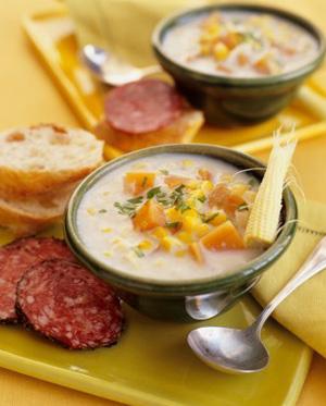 湯類非常有益健康,而且價(jià)格低廉、易于制作。可是,罐裝濃湯是由鹽、脂肪、人造添加劑、防腐劑,或許還有一些脫水胡蘿卜調(diào)制成的營(yíng)養(yǎng)價(jià)值非常低的“混合物”。一罐濃湯含1000毫克鈉,大約是你每天所需量的一半。因此,還是自己準(zhǔn)備雞肉、牛骨和蔬菜,親手做一碗熱騰騰、香噴噴的湯吧。