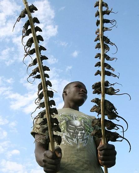 中國日報網(wǎng)環(huán)球在線消息:你能想象嗎?處處被人喊打的過街老鼠如今在非洲國家馬拉維成為了當(dāng)?shù)厝搜壑械摹懊牢丁。?jù)英國《每日郵報》8月9日報道,如今不少馬拉維當(dāng)?shù)厝藢㈦缰苹蛘唢L(fēng)干的熟田鼠穿成串沿街叫賣,雖然田鼠“賣相有些猙獰”,但是銷路卻十分不錯。