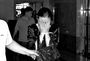 一名女婚托用手遮面。近日,替咖啡廳拉客的10名婚托被警方控制。本報(bào)記者 周曉東 攝