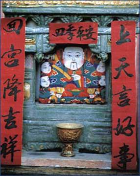 臘月二十三日為祭灶節(jié)。傳說灶神是玉皇大帝派到每個(gè)家中監(jiān)察人們平時(shí)善惡的神,每年歲末回到天宮中向玉皇大帝奏報(bào)民情,讓玉皇大帝賞罰。因此送灶時(shí),人們在灶王像前的桌案上供放糖果、清水、料豆、秣草;其中,后三樣是為灶王升天的坐騎備料。祭灶時(shí),還要把關(guān)東糖用火融化,涂在灶王爺?shù)淖焐稀_@樣。他就不能在玉帝那里講壞話了。常用的灶神聯(lián)上也往往寫著“上天言好事,回宮降吉祥!奔啊吧咸煅院檬拢陆绫F桨!敝惖淖志。另外,大年三十的晚上,灶王還要與諸神來人間過年,那天還得有“接灶”、“接神”的儀式。所以俗語有“二十三日去,初一五更來”之說。在歲末賣年畫的小攤上,也賣灶王爺?shù)膱D像,以便在“接灶”儀式中張貼。圖像中的灶神是一位眉清目秀的美少年,因此我國北方有“男不拜月,女不祭灶”的說法.以示男女授受不親。也有的地方對灶王爺與灶王奶奶合祭的,便不存在這一說法了。