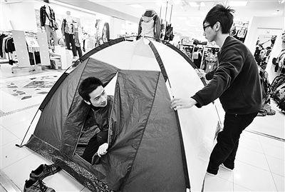 眼下不少市民外出踏青旅游,武漢各大商場的戶外用品銷售漸入旺季。21日,在漢口一商場里,營業(yè)員正忙著給顧客展示戶外帳篷。據(jù)了解,由于選購戶外用品的消費者大多是有車一族,商家在推薦時會側重于使用方便、環(huán)保型的產(chǎn)品。記者詹松攝影報道