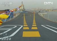 9月25日,我國第一艘航空母艦“遼寧艦”在中國船舶重工集團公司大連造船廠正式交付海軍。圖為中國首艘航母機庫內(nèi)停放的疑似艦載機。(央視截圖)