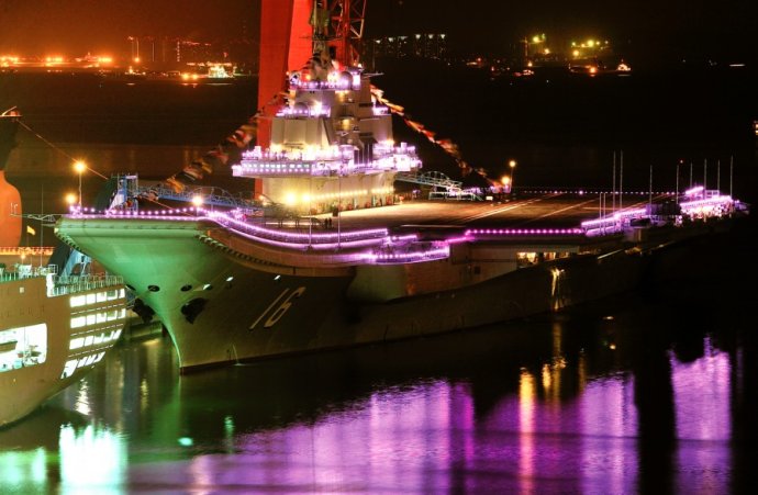 網(wǎng)友拍我航母平臺(tái)“遼寧艦”節(jié)日期間霓虹燈閃亮裝點(diǎn)海灣