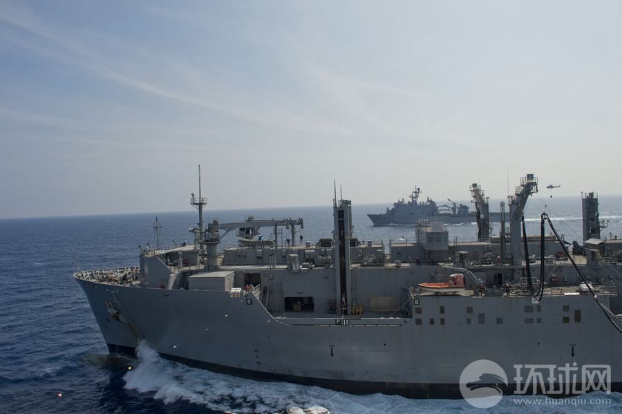 演習(xí)中美軍補(bǔ)給艦演練海上垂直補(bǔ)給