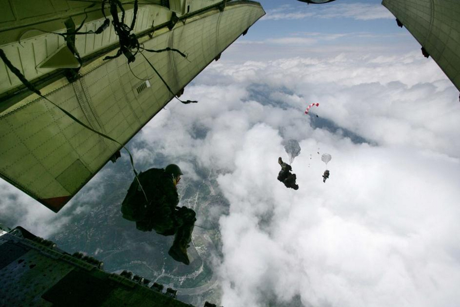 2008年5月14日,15名空降兵中從地震災(zāi)區(qū)四川茂縣上空4999米的高空奮不顧身地跳下。據(jù)總參作戰(zhàn)部統(tǒng)計,自2008年汶川特大地震發(fā)生以來,全軍遂行非戰(zhàn)爭軍事行動任務(wù)先后出動兵力已達(dá)250萬人次以上,組織民兵預(yù)備役近800萬人次,派出飛機(jī)近7000架次。軍隊和武警部隊始終聽黨指揮、服務(wù)人民、英勇善戰(zhàn),在應(yīng)對重大突發(fā)事件中,不畏艱險,勇挑重?fù)?dān),不怕疲勞,連續(xù)作戰(zhàn),圓滿完成了黨和人民賦予的任務(wù)。新華社發(fā)