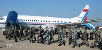 圖為中方導(dǎo)演部及指揮部人員乘專機(jī)全部出境,抵俄參演。中國軍網(wǎng)記者李靖攝