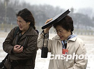 組圖:記者在風(fēng)雪中守望人大代表