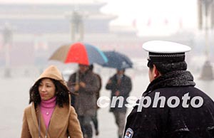 圖:“兩會”委員、代表冒雪赴會