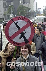 東京市民十五日在市中心的一處公園內(nèi)集會(huì),并在繁華的銀座商業(yè)街游行,反對(duì)美國(guó)準(zhǔn)備對(duì)伊拉克發(fā)動(dòng)戰(zhàn)爭(zhēng)。作者:陶光雄