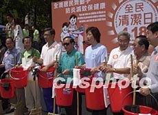 為掀起全民自覺防病熱潮,由澳門民政總署和衛(wèi)生局以及街總等十一個社團機構共約三千人參加的“全民清潔日”活動十八日在澳門佑漢公園舉行啟動儀式,圖為儀式結束后,與會的政府和社團負責人帶頭參加街區(qū)的清潔衛(wèi)生。李剛 攝