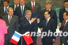 中國國務(wù)院總理溫家寶與法國總理拉法蘭四月二十五日在北京人民大會堂舉行會談,并出席雙方簽署關(guān)于中國購買三十架空中客車飛機(jī)的總協(xié)議簽字儀式。作者:毛建軍