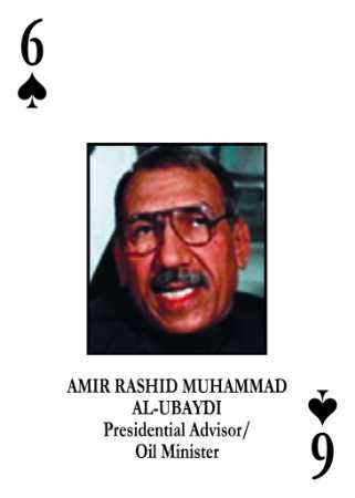 美軍方29日稱,他們已扣押了薩達(dá)姆政府的石油部長(zhǎng)阿米爾·穆罕默德·拉施德。拉施德在美軍通緝撲克中排名47,是黑桃六。他是美軍已宣布拘捕的第14名伊拉克高層官員。(路透)