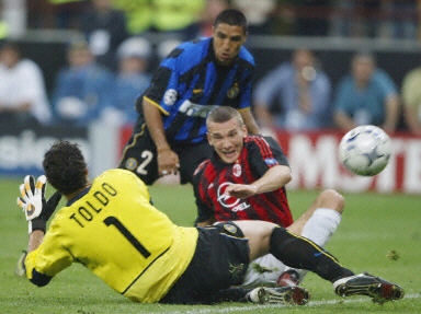為AC米蘭掃清前進(jìn)路上障礙的是他們的頭號(hào)射手舍甫琴科。這位有著“烏克蘭核彈頭”之稱的前鋒在上半場(chǎng)的傷停補(bǔ)時(shí)階段打入了雙方兩場(chǎng)半決賽中最重要的一粒入球,——前國(guó)際米蘭球員西多夫妙傳舍甫琴科,舍甫琴科在擺脫了國(guó)際米蘭隊(duì)幾名后衛(wèi)的防守后,在對(duì)方門前近距離處用右腳將球送入意大利國(guó)門托爾多把守的大門。