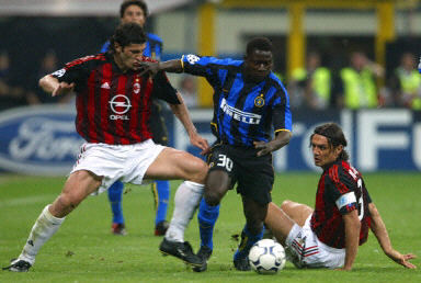 一球在手的AC米蘭占據(jù)了場(chǎng)上的主動(dòng),而他們的同城兄弟則必須在后面的45分鐘里連扳兩球才能擊敗對(duì)手出線。正如法新社所言,此后的比賽近乎瘋狂。國(guó)際米蘭的替補(bǔ)球員馬丁斯在比賽還剩下7分鐘的時(shí)候利用對(duì)方老后衛(wèi)科斯塔庫(kù)塔的失誤,為國(guó)際米蘭打入一球,使他們重新看到一線曙光。但是此后AC米蘭門將阿比亞蒂卻頑強(qiáng)的頂住了國(guó)際米蘭的狂轟濫炸,把1-1的結(jié)果保持到最后。