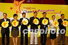 雅虎香港總經(jīng)理蔡寶德(右三)、立法會(huì)議員陳智思(中)等香港商界領(lǐng)袖參加揭幕。