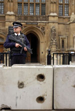 中新網(wǎng)5月24日電 據(jù)英國《泰晤士報(bào)》報(bào)道,為了避免倫敦市尤其是英國國會大廈遭受恐怖分子的襲擊,倫敦市日前全面加強(qiáng)了警戒措施。一夜之間,英國國會大廈的門口道路已經(jīng)豎起了一道水泥城墻。倫敦市警方也全面提高了整個(gè)倫敦市的安全戒備級別。