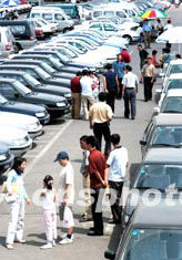六月中旬,北京市民攜家?guī)Э谠诒狈狡囀袌鲞x購汽車。車市層出不窮的新面孔和經(jīng)濟(jì)型轎車的價(jià)格一降再降,極大地刺激著消費(fèi)者的購車欲望,使北京各汽車銷售市場又出現(xiàn)年初如火如荼景象。中新社記者:王麗南