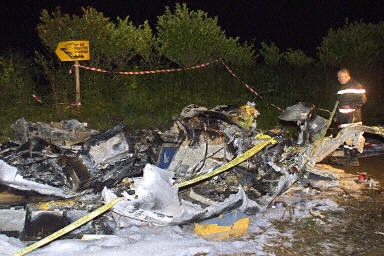 飛機墜毀后斷成兩截,機身隨即起火。機上53歲的飛行員死亡,另一名機師及兩名乘客受輕傷。