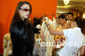 東北虎“巴黎之約,炫彩時(shí)尚”2003--2004國(guó)際皮草服飾最新流行趨勢(shì)發(fā)布會(huì)二十八日在哈爾濱舉行。中新社記者:毛建軍
