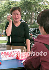 8月31日,鄭州市一位因經(jīng)濟困難而沒有委托訴訟代理人的女性在接受免費的法律服務。當日鄭州市許多法律援助中心走上街頭,宣傳將于9月1日實施的《法律援助條例》,并為求助的人員提供免費的法律幫助。作者:慎重