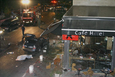 巴以9月9日再次經(jīng)歷血腥的一天。以色列繼續(xù)進(jìn)行定點(diǎn)清除,擊斃了一名哈馬斯地區(qū)領(lǐng)導(dǎo)人。但數(shù)小時(shí)后,以色列特拉維夫一個(gè)軍事基地外就發(fā)生自殺性爆炸,造成至少8人死亡和30人受傷。不久,耶路撒冷西部一家咖啡店也發(fā)生爆炸,已造成7人死亡,大約40人受傷。巴勒斯坦伊斯蘭抵抗運(yùn)動(dòng)哈馬斯宣稱(chēng)對(duì)這些襲擊負(fù)責(zé)。