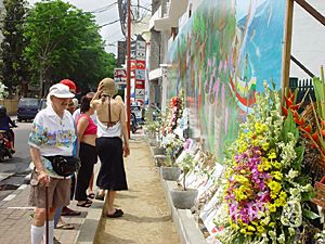 時(shí)隔一年,前來這里報(bào)道東盟系列峰會(huì)的本社記者踏訪爆炸案現(xiàn)場,追尋恐怖主義的罪惡,感受人們對(duì)和平的渴望。遠(yuǎn)遠(yuǎn)望去,在鱗次櫛比的商店旅館中間,有一片用木板和鐵柵欄圍起的空地,格外顯眼。當(dāng)記者的采訪車剛剛停下,一位身材壯實(shí)的警察即走上前來,用不太流利的英語向記者介紹爆炸發(fā)生時(shí)的慘狀。