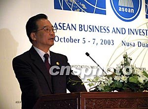 首屆東盟商業(yè)與投資峰會十月七日在印尼巴厘島舉行,中國國務院總理溫家寶出席會議并發(fā)表題為《中國的發(fā)展和亞洲的振興》的演講,來自中國、東盟以及世界其他地區(qū)的三百多名企業(yè)家聽取了演講。中新社記者:齊彬