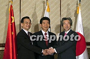 我們?nèi)龂?guó)領(lǐng)導(dǎo)人一致認(rèn)識(shí)到,中日韓推進(jìn)三方合作已經(jīng)具備了堅(jiān)實(shí)的基礎(chǔ),確信拓展和深化三方合作不僅有利于進(jìn)一步推動(dòng)三國(guó)間雙邊關(guān)系的穩(wěn)定發(fā)展,而且有利于實(shí)現(xiàn)整個(gè)東亞的和平、穩(wěn)定和繁榮。
