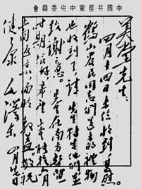 1951年廣東僑鄉(xiāng)鶴山開展土地改革,經(jīng)毛主席、周總理批準,司徒美堂南下視察土改,以其所見所聞在《光明日報》發(fā)表了《粵中僑鄉(xiāng)的土改》專欄文章。途中,司徒美堂上書毛主席,報告土改情況,并轉去農(nóng)民獻給毛主席的禮物(由致公黨的黃鼎臣同志帶至北京)。很快,他就得到毛主席的復信,請他向鶴山農(nóng)民轉達主席的謝意,并希望他于6月上旬返京(原信見圖片)。復信由粵中報制版刊出,僑鄉(xiāng)農(nóng)民也十分高興。