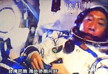 中新網(wǎng)10月15日電 北京時(shí)間15日18時(shí)40分許,當(dāng)“神舟”五號(hào)飛船運(yùn)行到第七圈,在距地面343公里的太空時(shí),中國(guó)首位航天員楊利偉從飛船上發(fā)出問候。