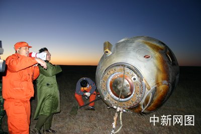 “神舟”五號(hào)返回艙成功著陸。作者:孫陽