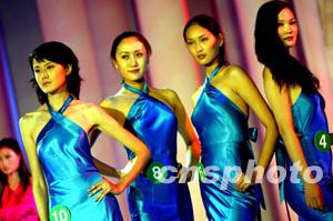 來(lái)自中國(guó)內(nèi)地和香港特別行政區(qū)的六十名佳麗十八日聚集汕頭林百欣會(huì)展中心,參加在這里舉行的第九屆中國(guó)模特之星大賽,在T臺(tái)上展開她們年青的美麗人生。中新社記者:毛建軍