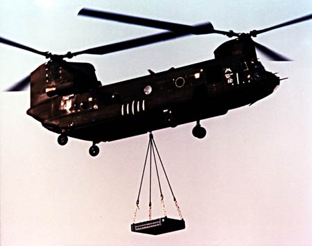 CH-47D“支奴干”是一種較新的改型,美軍除裝備部隊(duì)外,還向多國(guó)出口!爸伞敝行瓦\(yùn)輸直升機(jī)在海灣戰(zhàn)爭(zhēng)中發(fā)揮了巨大作用。這種直升機(jī)主要任務(wù)是輸送人員、武器、彈藥、設(shè)備及其他貨物,對(duì)戰(zhàn)斗部隊(duì)進(jìn)行一般保障。其絕大多數(shù)任務(wù)是運(yùn)送補(bǔ)給和外載武器彈藥。