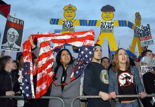 據(jù)英國(guó)反戰(zhàn)組織"停戰(zhàn)聯(lián)盟"說(shuō),周四下午將有10萬(wàn)人上街示威游行,而其中也不乏久住英國(guó)的美國(guó)人。一位參加游行的美國(guó)人坦言,很多示威者不一定反美,但一定反布什。