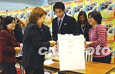 選舉管理委員會的工作人員22日在投票站內(nèi)做最后準備,確保選舉投票順利進行。中新社記者:洪少葵