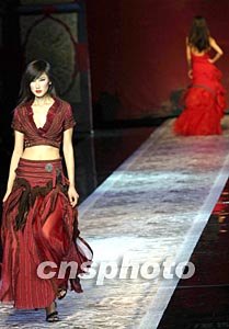 十一月二十五日晚,紫禁城的四季·馬克張春夏高級(jí)時(shí)裝發(fā)布會(huì)在北京中國(guó)大飯店舉行,模特為觀眾演繹了一場(chǎng)雍容華貴、充滿皇家氣勢(shì)的視覺(jué)盛宴。中新社記者:盛佳鵬
