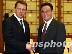 中新社北京十二月四日電(記者張朔)中國全國人大常委會委員長吳邦國今天下午在人民大會堂會見首次訪華的斯洛文尼亞總理羅普時說,中國新一屆中央領(lǐng)導(dǎo)集體高度重視發(fā)展與斯洛文尼亞的關(guān)系。