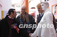 第二屆中國(大朗)國際毛織產(chǎn)品交易會十三日在廣東東莞大朗鎮(zhèn)新落成的中國大朗毛織貿(mào)易中心開幕,來自日、德、意、港澳臺及中國內(nèi)地的三百多家企業(yè)到場參展交易。圖為法國著名時裝設(shè)計師前來交易會現(xiàn)場參觀。作者:羅仰明