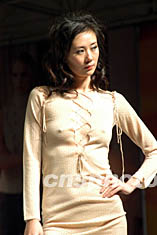 第二屆中國(大朗)國際毛織產(chǎn)品交易會十三日在廣東東莞大朗鎮(zhèn)新落成的中國大朗毛織貿(mào)易中心開幕,首場品牌發(fā)布會上,模特兒穿著薏莎品牌向人們展示該品牌的最新服裝。作者:羅仰明