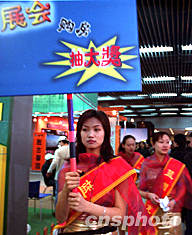 十二月十九日,在北京國貿(mào)中心舉行的冬季房展會(huì)上,售房小姐手持“購房抽大獎(jiǎng)”的牌子在展廳中穿梭。房地產(chǎn)商希望通過這種方式推動(dòng)樓盤銷售。作者:張雷