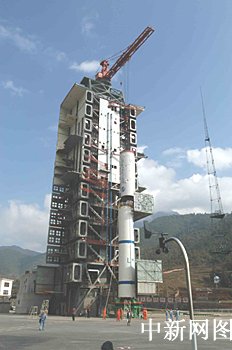 圖:"長征二號丙"改進(jìn)型運載火箭一、二級吊裝上發(fā)射塔架