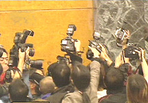香港知名女星梅艷芳十二月三十日凌晨去世。香港眾多媒體到養(yǎng)和醫(yī)院報道一線消息。(電視截圖)