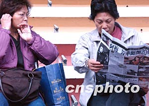 香港百變天后梅艷芳因病于十二月三十日零晨兩點五十分在香港逝世。圖為香港市民清晨閱讀有關(guān)梅艷芳病逝消息。中新社記者:錢興強(qiáng)