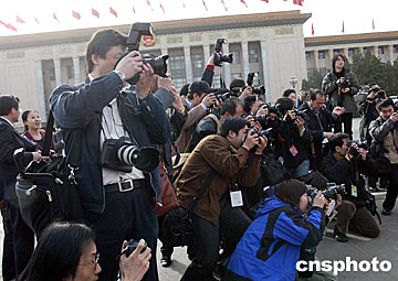 全國(guó)政協(xié)十屆二次會(huì)議十二日在北京人民大會(huì)堂閉幕,采訪(fǎng)大會(huì)的記者在會(huì)場(chǎng)外抓拍的陣勢(shì)頗為壯觀。中新社記者:滿(mǎn)會(huì)喬