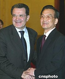 普羅迪說,毫無疑問,歐盟希望無論在經(jīng)貿(mào)領(lǐng)域,還是在世界事務(wù)中,都與中國成為更重要的合作伙伴。歐盟希望進(jìn)一步發(fā)展同中國的戰(zhàn)略關(guān)系,使雙方的合作更加多樣化。普羅迪重申歐盟將堅持一個中國的原則立場。