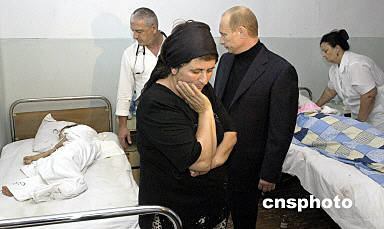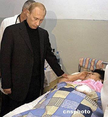 9月4日,俄羅斯總統(tǒng)普京在飛抵北奧塞梯共和國別斯蘭市后看望在人質(zhì)事件中的受傷人員。隨后,普京與有關(guān)部門領(lǐng)導(dǎo)人舉行緊急會議,下令封鎖別斯蘭市,關(guān)閉北奧塞梯共和國的邊境,全力搜捕所有參與劫持人質(zhì)的恐怖分子。俄羅斯聯(lián)邦北奧塞梯共和國緊急情況部官員4日說,俄人質(zhì)事件中的遇難人數(shù)已上升至250人。
